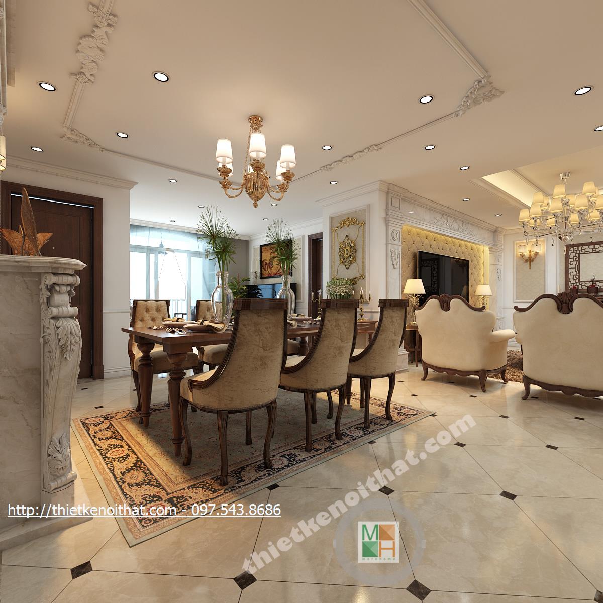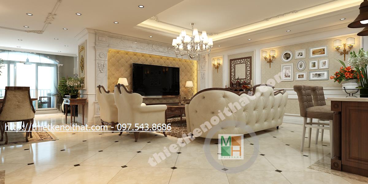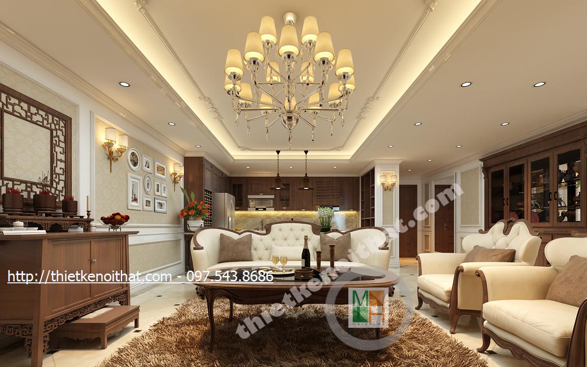 Thiết kế nội thất chung cư Sunrise tân cổ điển