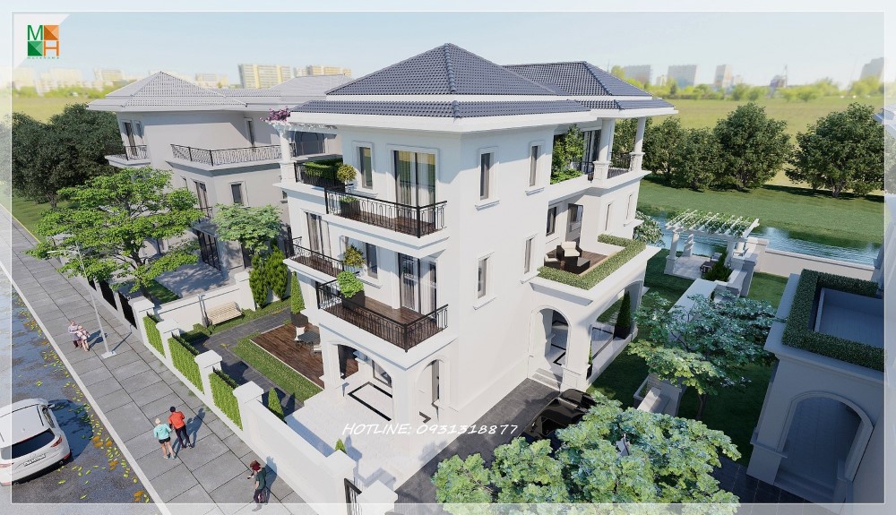 Thiết kế kiến trúc biệt thự 3 tầng có bể bơi tại Hoài Đức Hà Nội mang vẻ đẹp cách tân thời thượng. Quý khách có nhu cầu thiết kế hãy liên hệ Morehome để được tư vấn: 0931318877