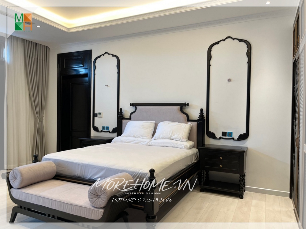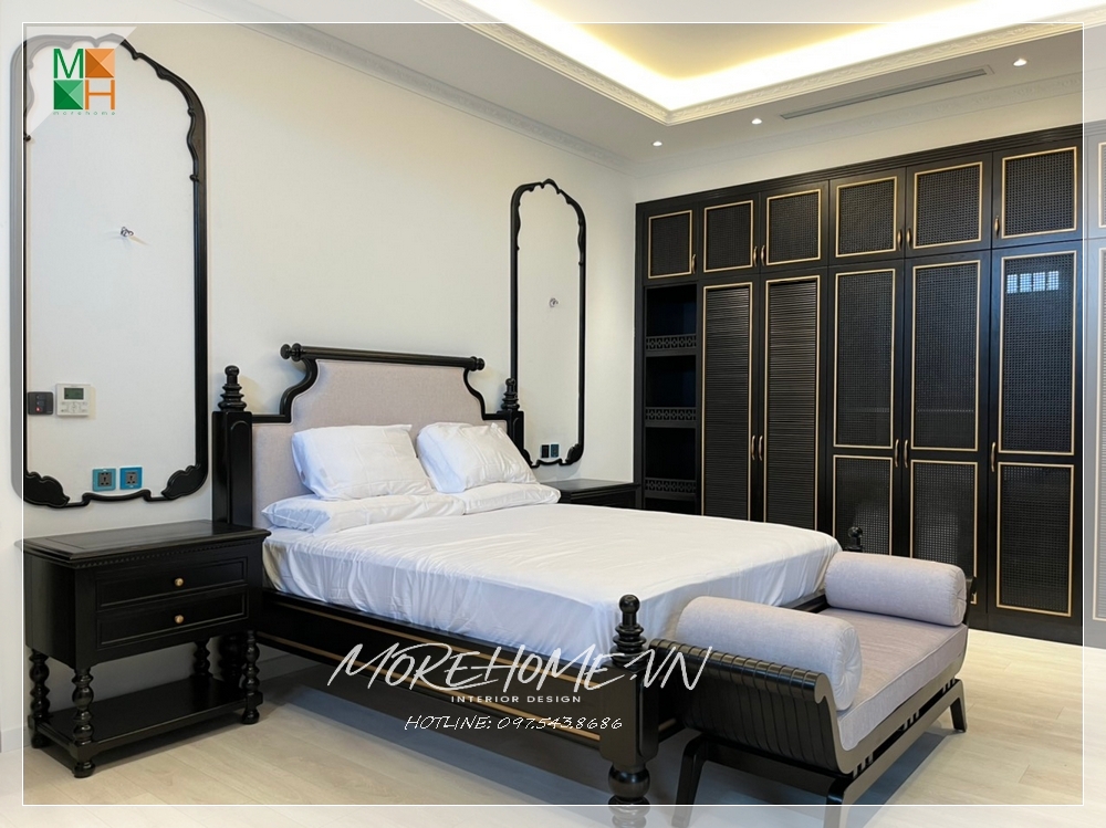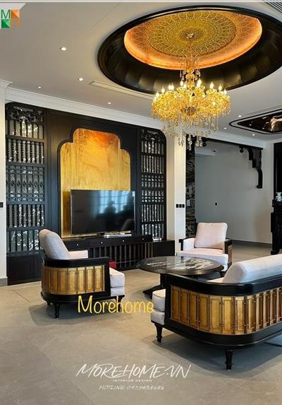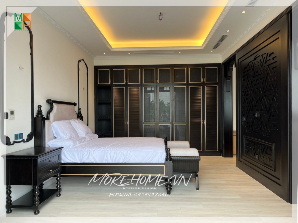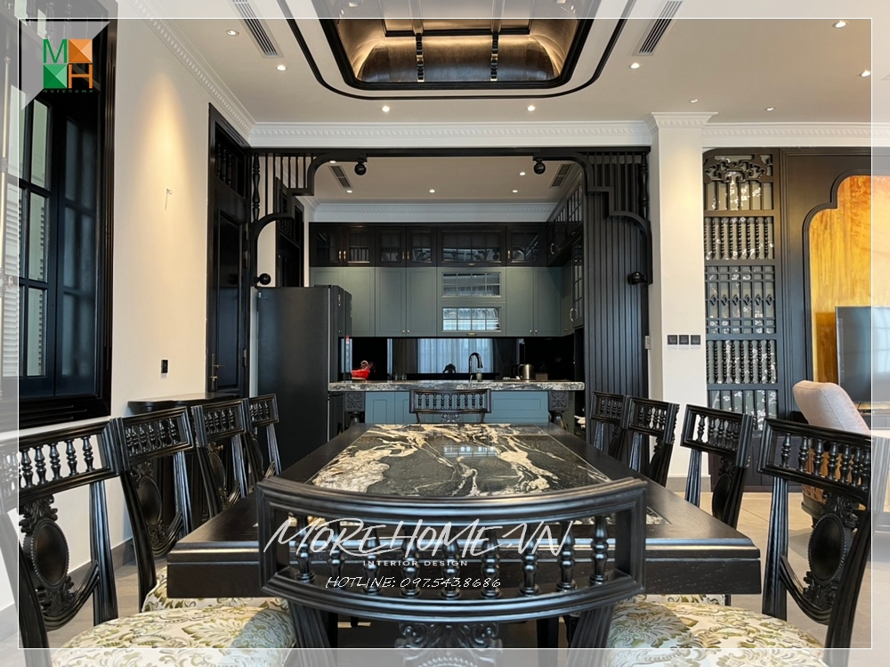 Thi công nội thất biệt thự cao cấp phong cách Indochine cao cấp gỗ sồi mỹ