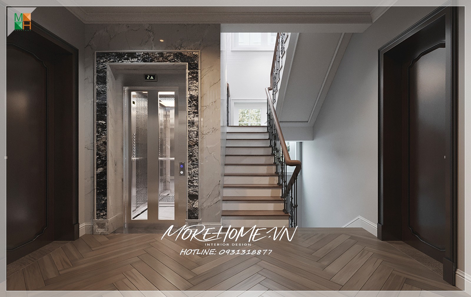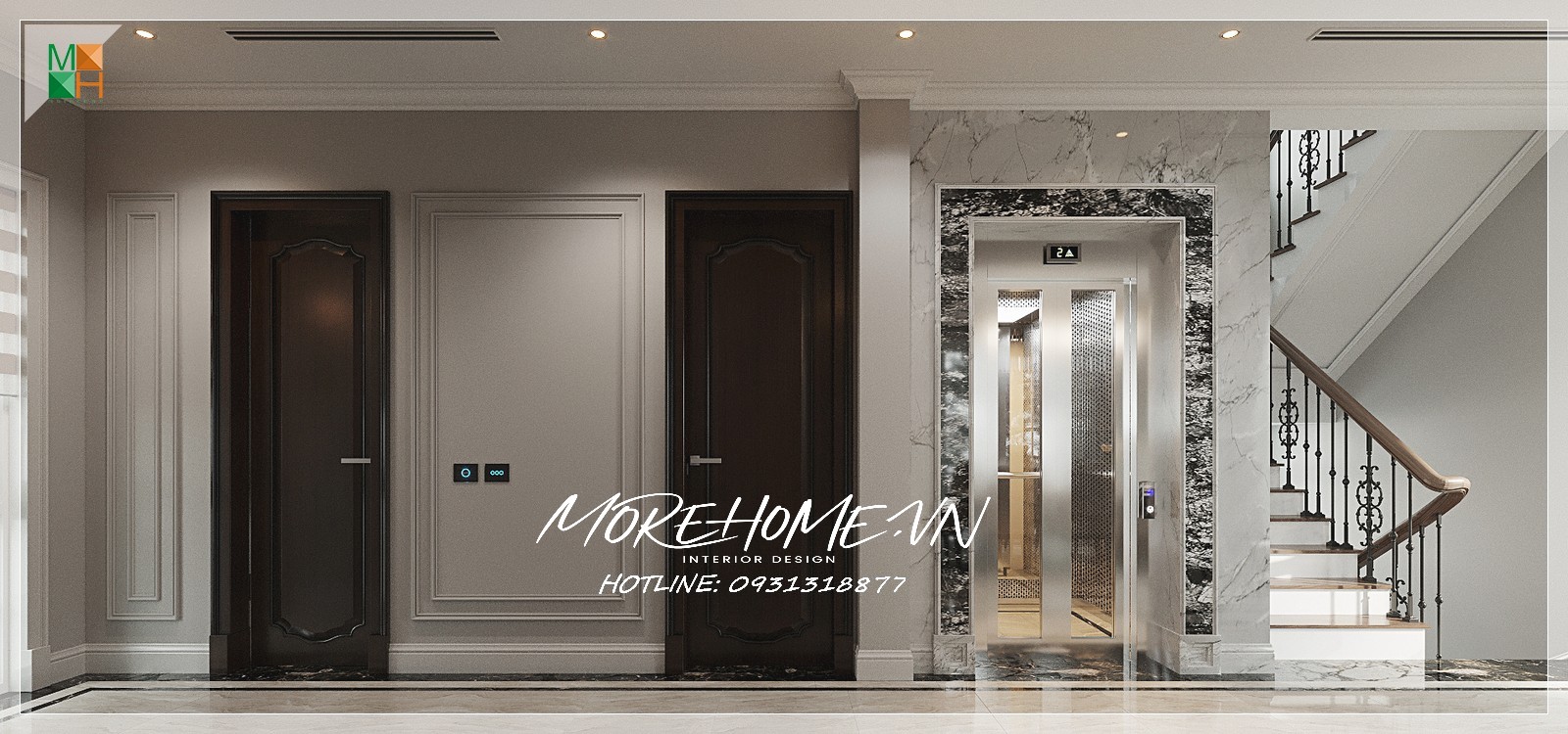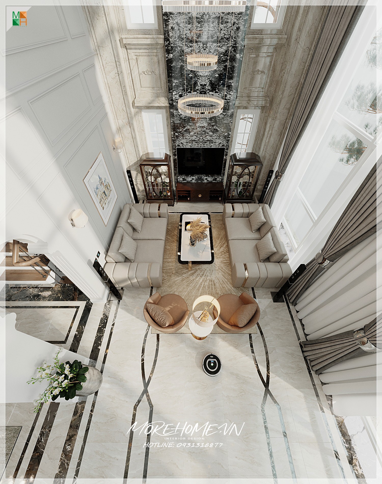 Thiết kế kiến trúc biệt thự cao cấp tân cổ điển, Quý khách hàng có nhu cầu thiết kế vui lòng liên hệ MoreHome để được tư vấn thêm