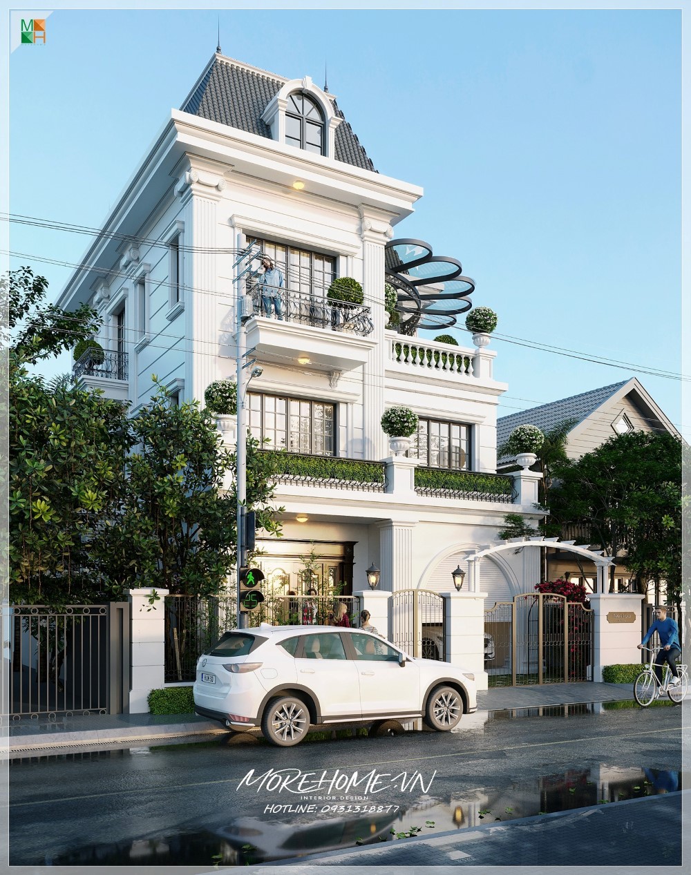 Thiết kế biệt thự 3 tầng tân cổ điển kiểu Pháp đẹp, sang trọng tại Hải Phòng