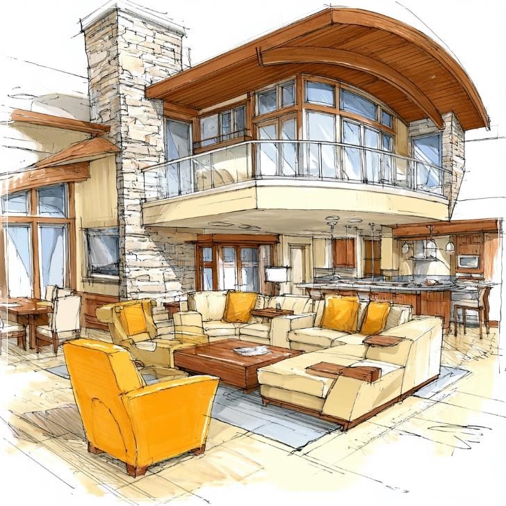 Bản vẽ cắt ngang biệt thự hai tầng, nhìn gần, phong cách kiến trúc hiện đại. Cắt nhà thể hiện chi tiết...