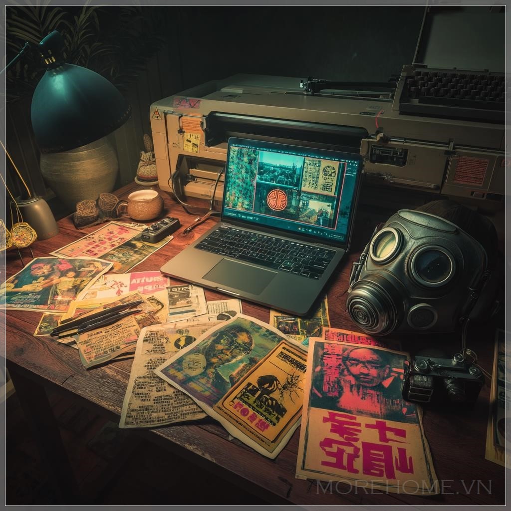 Ở Sài Gòn, không khí buổi sáng thường nhộn nhịp và vội vã, nhưng ở đây, trong căn phòng này, tất cả dường như ngừng lại. Thời gian như bị kéo dài, nhường chỗ cho sự tỉnh thức và những suy nghĩ lắng đọng. Mọi thứ xung quanh tôi bắt đầu hòa quyện, từ ánh sáng của chiếc laptop đến âm thanh của máy in, và cả cái mặt nạ với đôi mắt xanh huyền bí kia. Chúng tạo nên một cảm giác như đang tham gia vào một nghi lễ, một khoảnh khắc tĩnh lặng nhưng đầy mạnh mẽ.