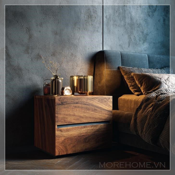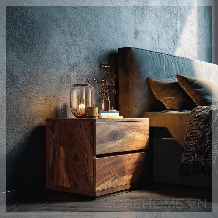 Phòng ngủ hiện đại không chỉ là nơi nghỉ ngơi mà còn là không gian thể hiện phong cách cá nhân. Bàn đêm gỗ sang trọng, với những vân gỗ tự nhiên sắc nét, tạo nên một điểm nhấn hoàn hảo cho không gian này. Được thiết kế với đường nét tối giản nhưng vẫn đầy tính nghệ thuật, chiếc bàn này mang đến vẻ đẹp thanh lịch và hiện đại.