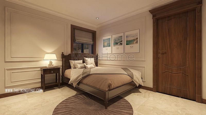 Thiết kế nội thất giường ngủ đẹp gỗ óc chó tại biệt thự Hà Nội phong cách tân cổ điển