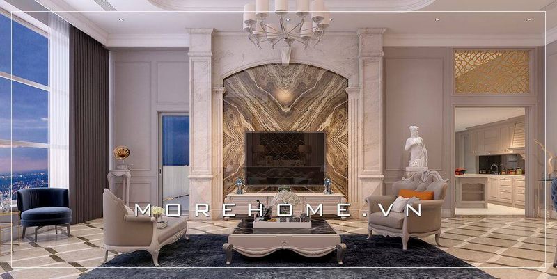 Thiết kế phòng khách chung cư cao cấp theo phong cách tân cổ điển hoàng gia, lộng lẫy lôi cuốn