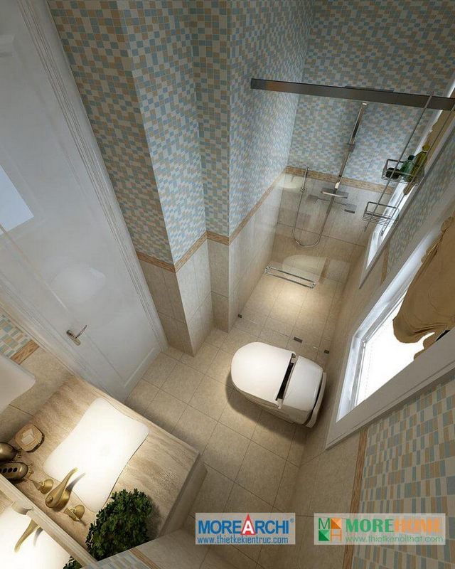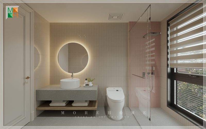 Được sử dụng gạch lát nền, ốp tường màu sáng giúp cho căn phòng được bừng sáng có sự đồng nhất tương đồng trong không gian.