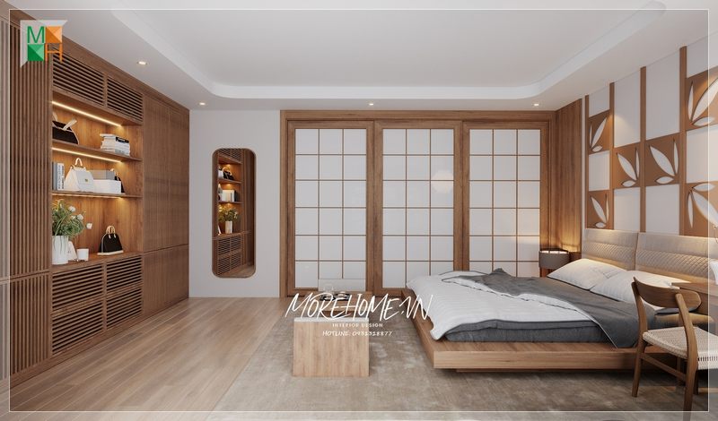 Thiết kế phòng ngủ với phong cách nhật nét tinh tế nhã nhặn mà không kém phần sang trọng mang cảm giác thư thái an nhiên.
