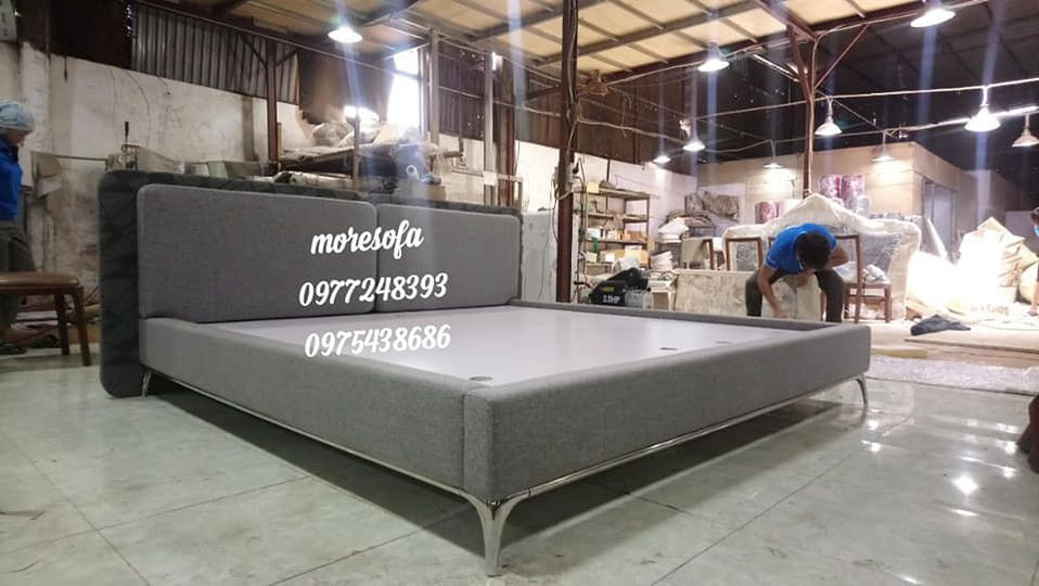 Giường ngủ đầu giường toàn bộ bọc nỉ cao cấp kết hợp hệ khung chân inox