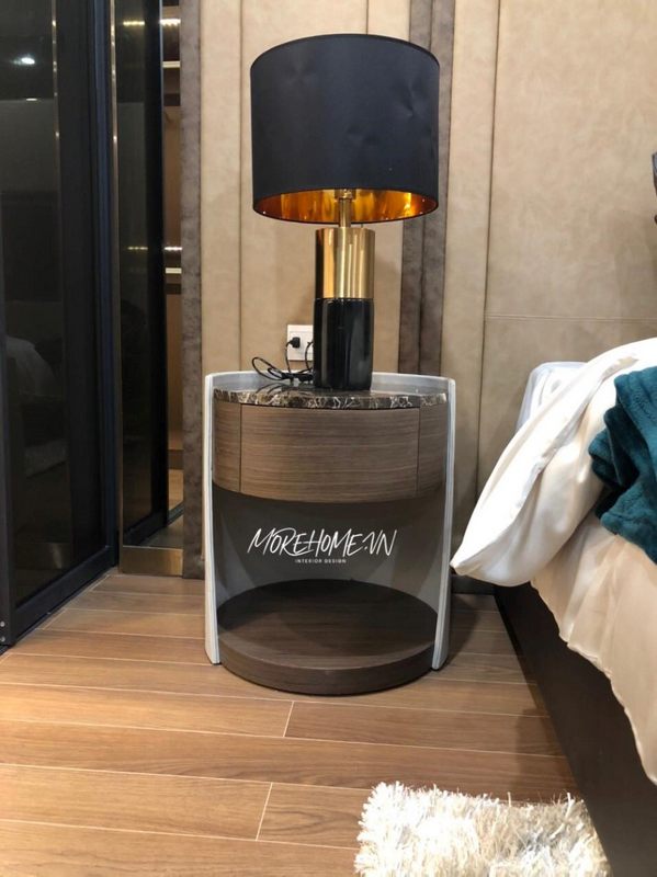 Mẫu tab đầu giường phòng ngủ gỗ công nghiệp mặt đá đen cao cấp phong cách hiện đại do Morehome sản xuất