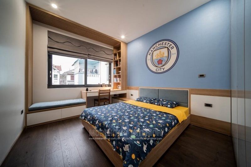 Thiết kế nội thất phòng ngủ cho bé trai này được thiết kế và thi công dễ dàng, cho phép trẻ dễ dàng sử dụng và điều chỉnh chi tiết trang trí.
